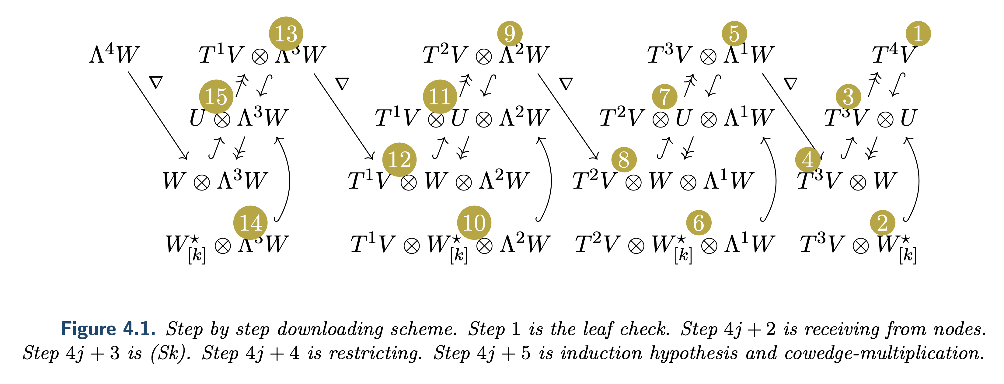 The construction of MoulinAlg21 makes use of tensors and wedge powers. These spaces are arranged is a clever way so the data recovery can be done in a sequential manner.